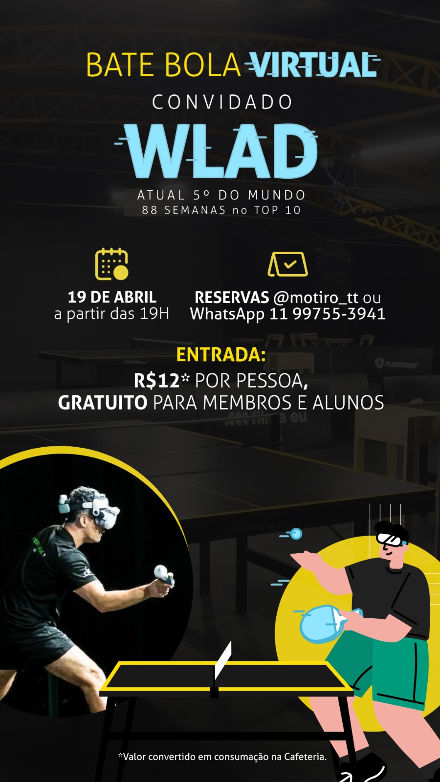 ➡️ Neste encontro, o Wlad vai fazer um Tour com a gente dentro do Eleven Table Tennis, o jogo oficial escolhido pelo ITTF para a entrada do TM no mundo dos e-games.